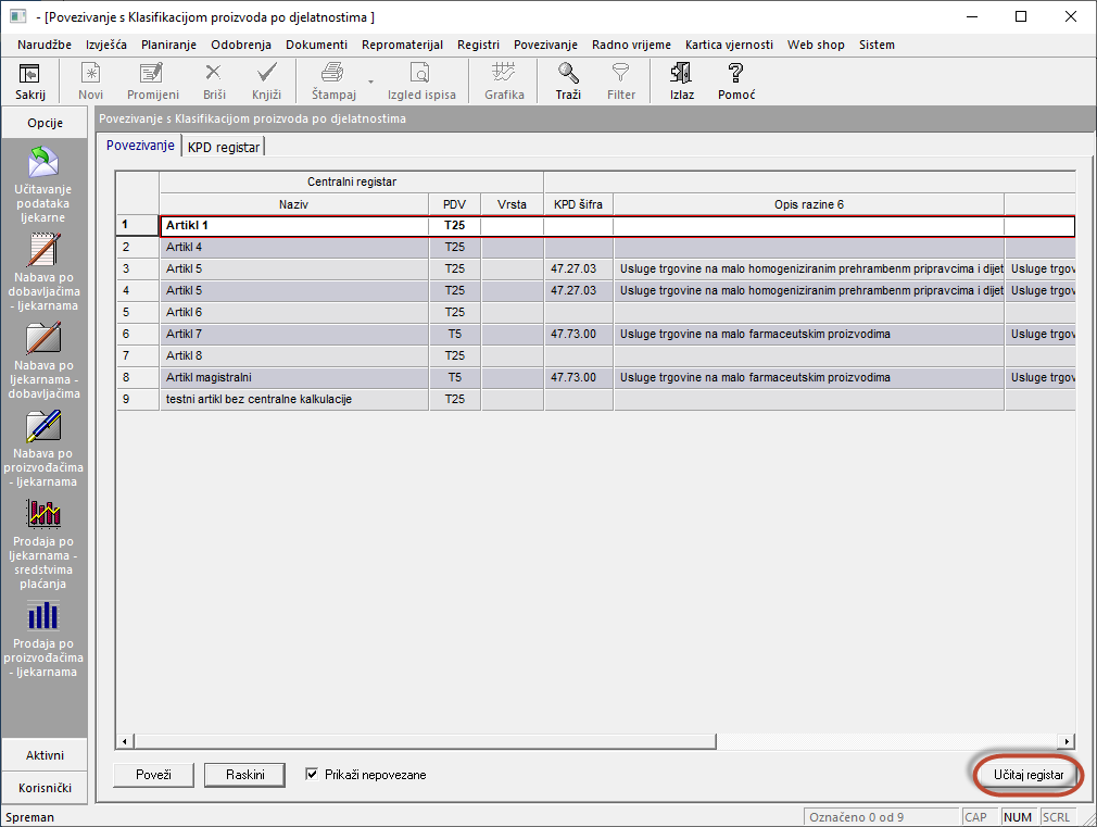 U opciji Povezivanje -> Povezivanje Centralni Registar -> KPD kliknite na gumb "Učitaj registar"