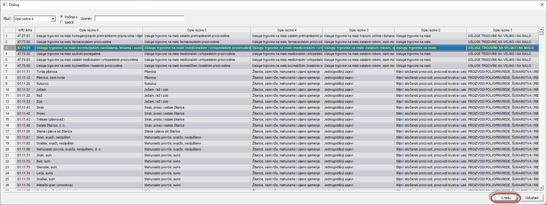 U otvorenom dialogu, izaberite KPD šifru i kliknite "U redu"