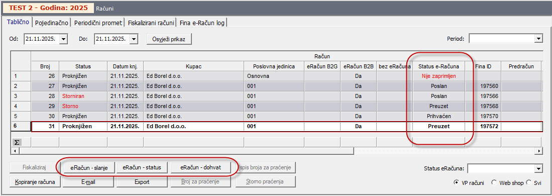 Knjiženjem računa automatski se izvodi fiskalizacija i slanje eRačuna.