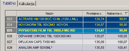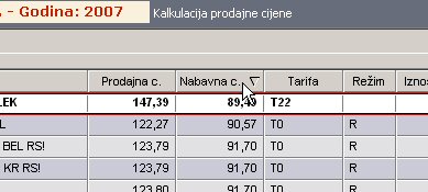 2. tablicu sortirajte po nabavnoj cijeni tako da lijevom tipkom miša kliknete na zaglavlje stupca "Nabavna c."