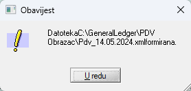 Pojavit će nam se prozor PDV obrasca kojeg ispunimo i kliknemo na U redu :