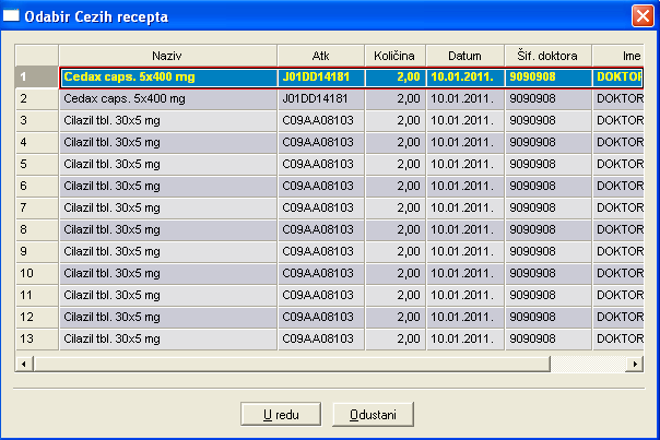 - recepte popravite u opciji Dokumenti -> Recepti -> Pojedinačno (svi recepti su s datumom 01.01.2011.)
