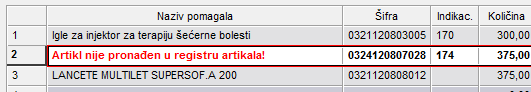 - klikom miša na obavijest "Artikl nije pronađen u registru pomagala!" program će prikazati sve artikle iz registra koji su u istoj generičkoj skupini kao i propisano pomagalo: