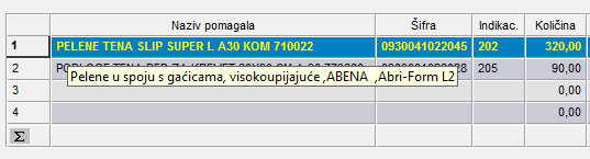- u polju naziv pomagala program prema dohvaćenoj ISO šifri pomagala prikazuje naziv iz registra artikla, a pozicioniranjem miša na željeno pomagalo prikazati će se njegov puni naziv s liste ortopedskih pomagala