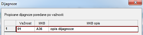 - za detaljan prikaz dijagnoze potrebno je odabrati opciju "Dijagnoza":