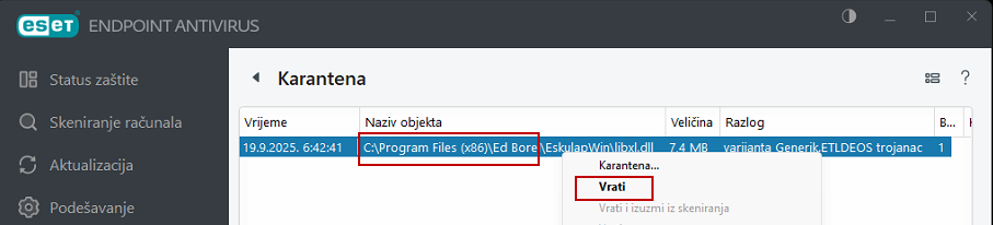 19.09.2025. Problem s NOD32 antivirusnim programom