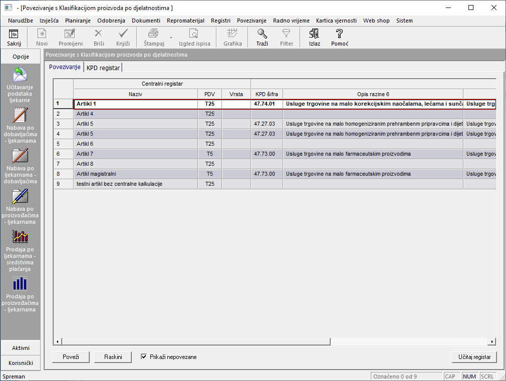 U kartici "Povezivanje", označite artikle kojima želite povezati KPD šifru