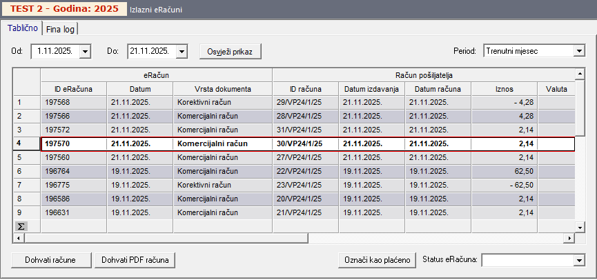 Klikom na tipku „eRačun – dohvat“ moguće je pregledati PDF prikaz računa koji će biti poslan krajnjem kupcu.