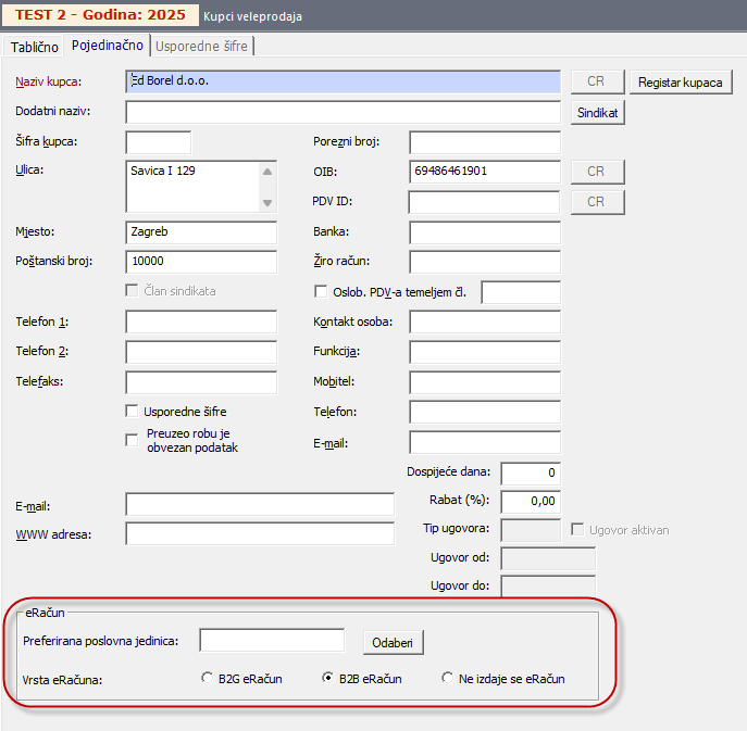 NAPOMENA: Za korisnike Centralnog registra koji koriste sinkronizaciju registra kupaca, atribut vrste eRačuna može se automatski sinkronizirati iz centralnog sustava, pa ga u tome slučaju nije potrebno ručno postavljati.