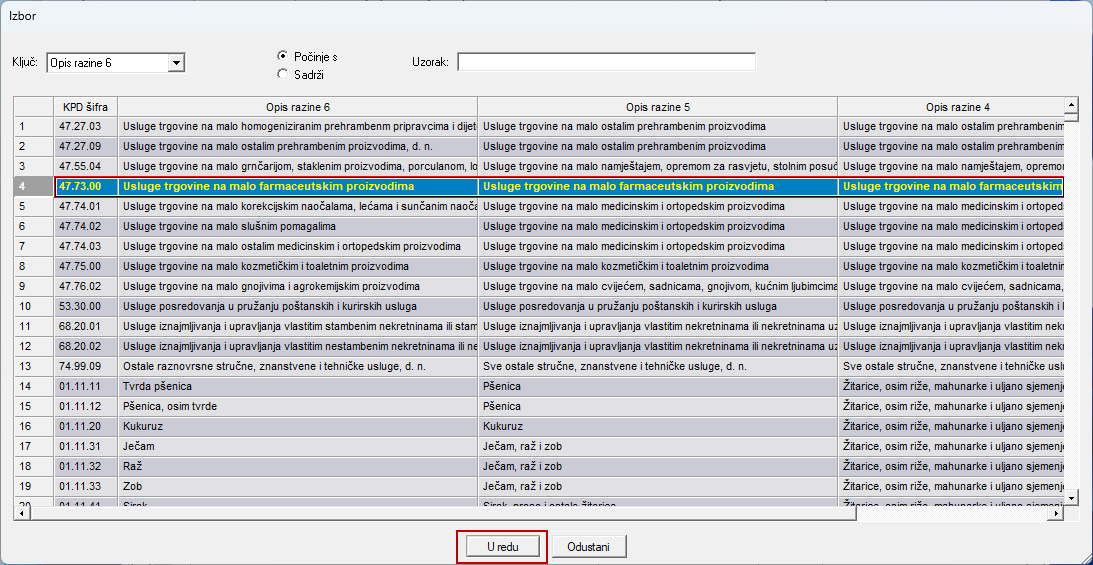 U novootvorenom dialogu, izaberite potrebnu KPD šifru i kliknite "U redu":