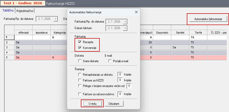 - u opciji "Dokumenti" -> "Fakture" -> "Fakturiranje" odabirom opcije "Automatsko fakturiranje" izradite specifikacije HZZO recepata kao što ste do sada izrađivali fakture