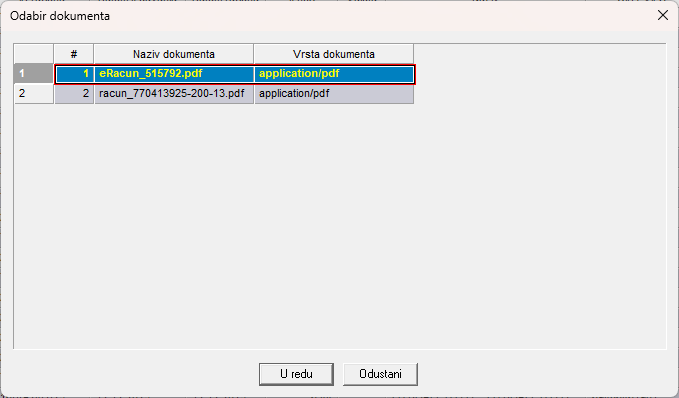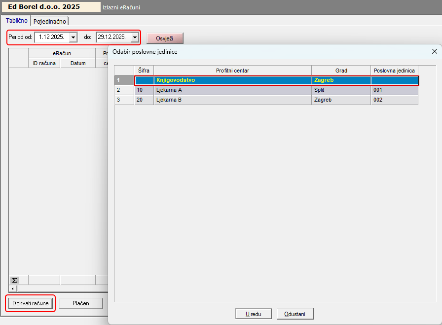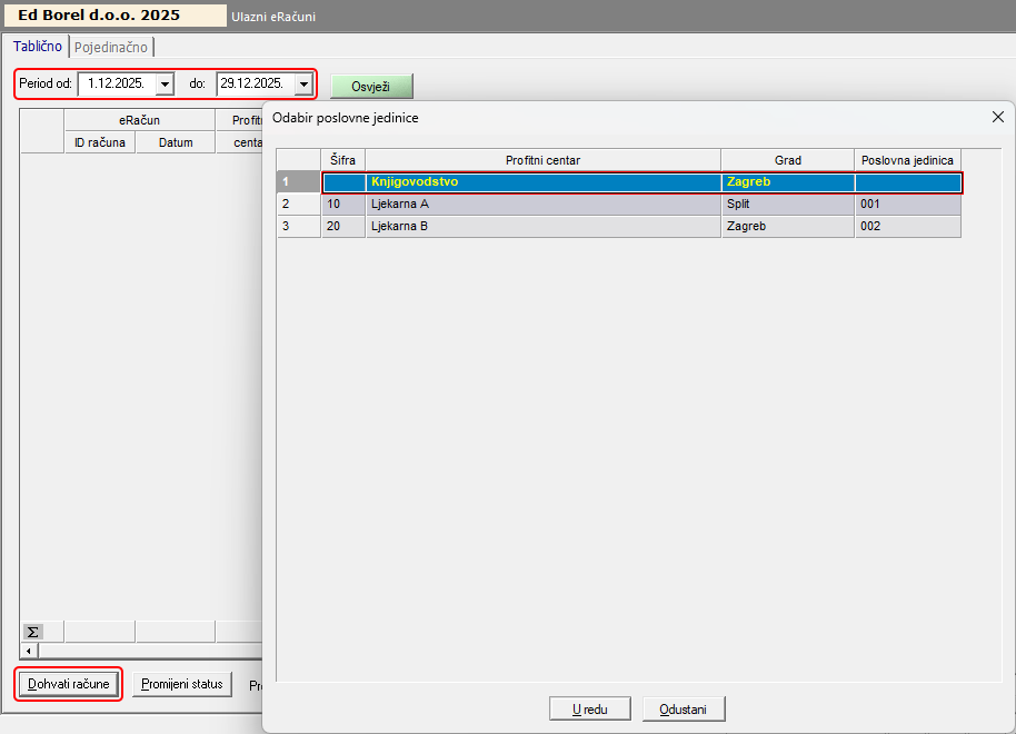 Nakon što odaberemo poslovnu jedinicu za koju želimo učitati ulazne e-Račune potvrdimo odabir klikom na U redu.