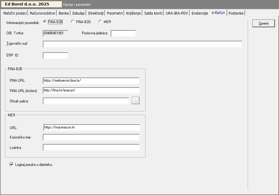 ERP ID: za FINU upisati 7000070, za MER upisati EskulapWin-001