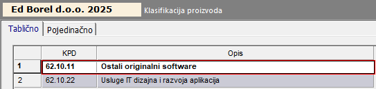 - KPD šifru moguće je upisati ili izabrati iz Registra klasifikacija proizvoda pritiskom na tipku F5