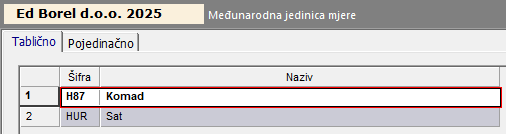 - Jedinicu mjere moguće je upisati ili izabrati iz Registra međunarodnih jedinica mjere pritiskom na tipku F5