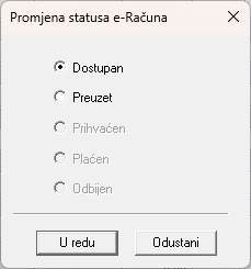 - Otvorit će se prozor za promjenu statusa gdje odaberemo koji status želimo postaviti na e-Račun i potvrdimo odabir klikom na U redu, npr :