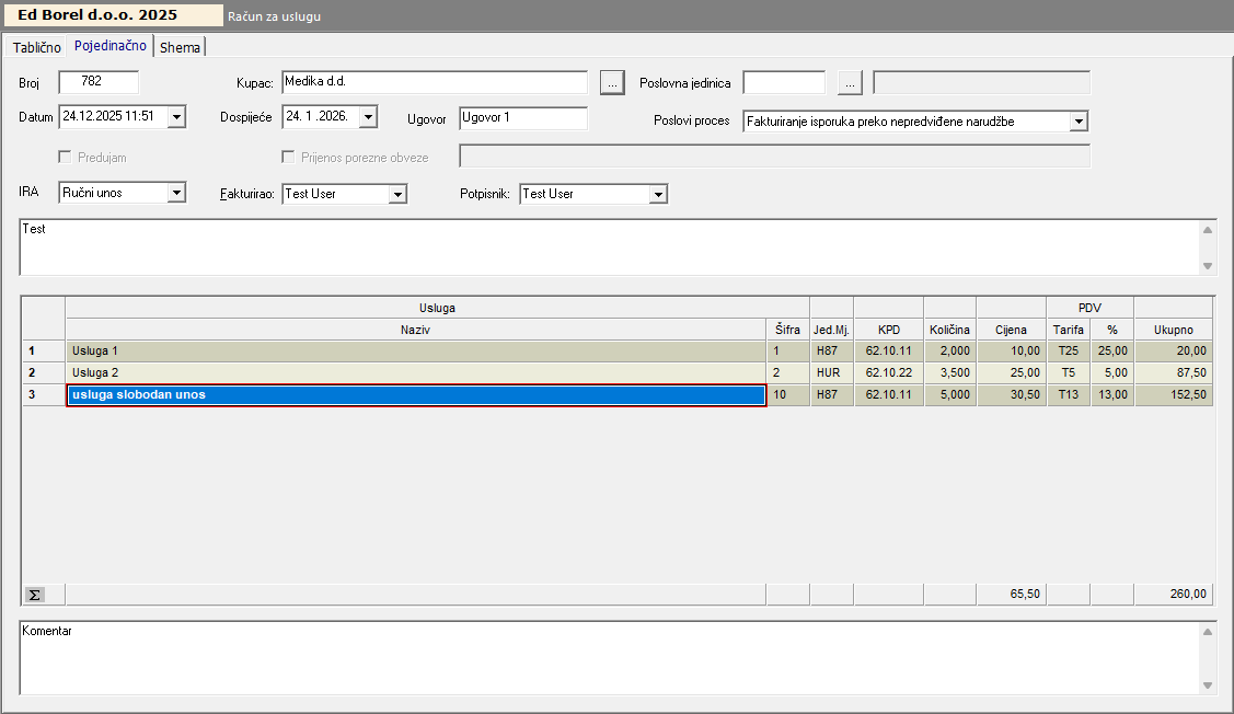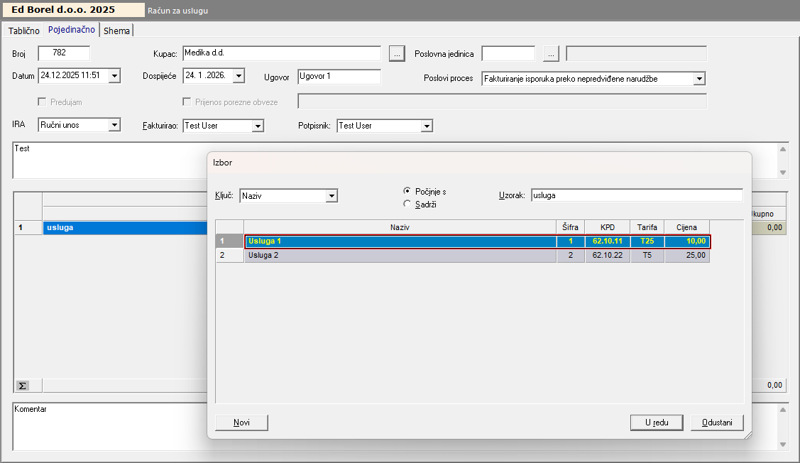 - Unos usluge ==> Proces je isti kao kod unosa računa za uslugu!
