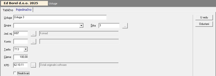 - šifru usluge moguće je upisati (nije obvezan podatak)