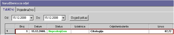 - ako je na odjelu dovoljna količina traženog artikla, količina za artikl s narudžbenice preuzima se iz skladišta na odjelu