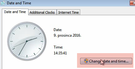 - Postupak povrata ispravnog datuma je identičan gore navedenom postupku ili vratite automatsko vrijeme računala (opisano pod točkom 2.)